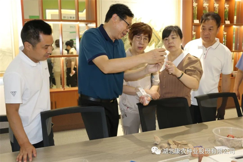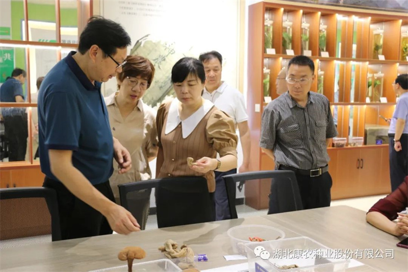 领导一行参观了公司生产加工车间、种质资源库、研发中心、综合展厅,总经理彭绪冰就公司林下经济作物中药材、魔芋等作物的基地规模、技术流程、成本投入与产出、市场现状及前景等进行详细介绍。