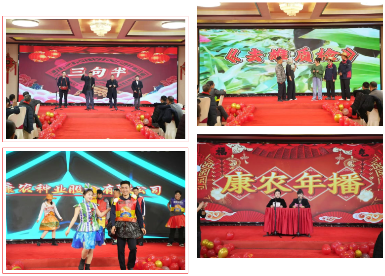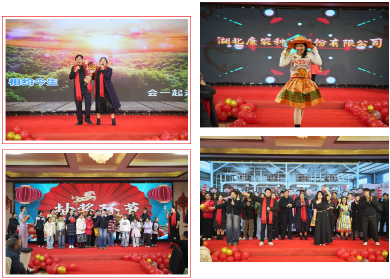 精彩纷呈的文艺表演贯穿晚宴全程,成为展现康农人风采的舞台。三句半《方言话康农》用诙谐幽默的本土语言,引得满座欢腾;情景剧《去雄质检》通过艺术化还原田间场景,将“纯度优先、过程管控、责任闭环”的质量文化深入人心;玉米时装走秀创意十足,把产品元素与时尚完美融合;诗歌朗诵《康农赋、奋进歌》气势昂扬,抒发了康农人的奋进豪情。全场大合唱《相亲相爱一家人》将晚宴氛围推向高潮,传递出康农大家庭的温暖与力量。