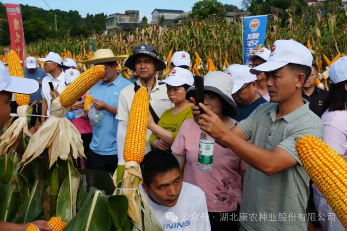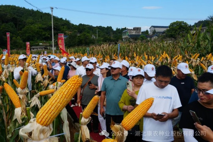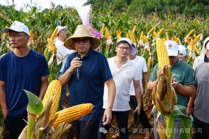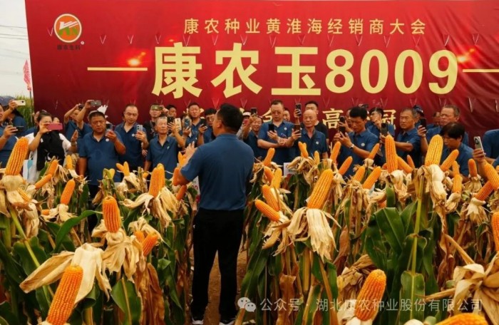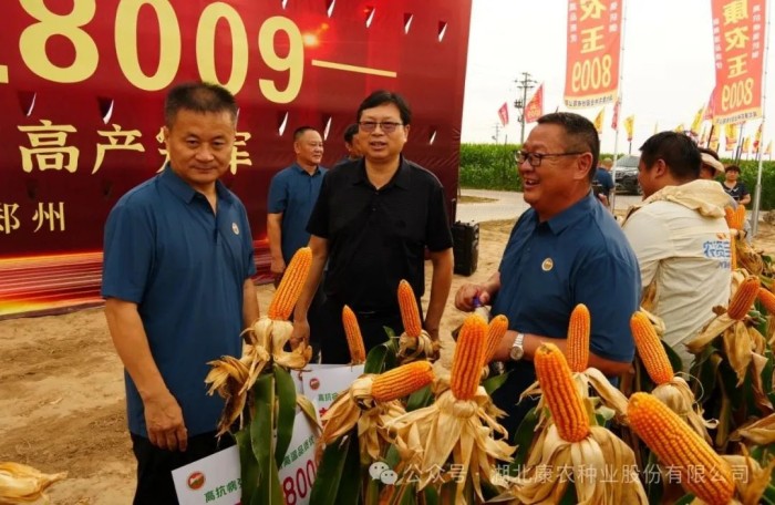 8月4日,皇冠24500足球(以下简称“康农种业”)黄淮海经销商大会暨“康农玉8009、康农豫单883观摩会”在郑州香堤湾度假酒店隆重召开。湖北长阳土家族自治县委常委、副县长田玉宇,自治县农业农村局副局长覃兆敏,崖州湾国家实验室、高级科学家陈泽辉教授,贵州省农科院玉米研究所、郭向阳研究员,河南农业大学张战辉副教授,隆平生物总经理、吕玉平博士应邀出席会议。来自湖北、河南、山东、河北、安徽、江苏、山西、陕西500余种业精英和经销商代表齐聚一堂,共绘蓝图。