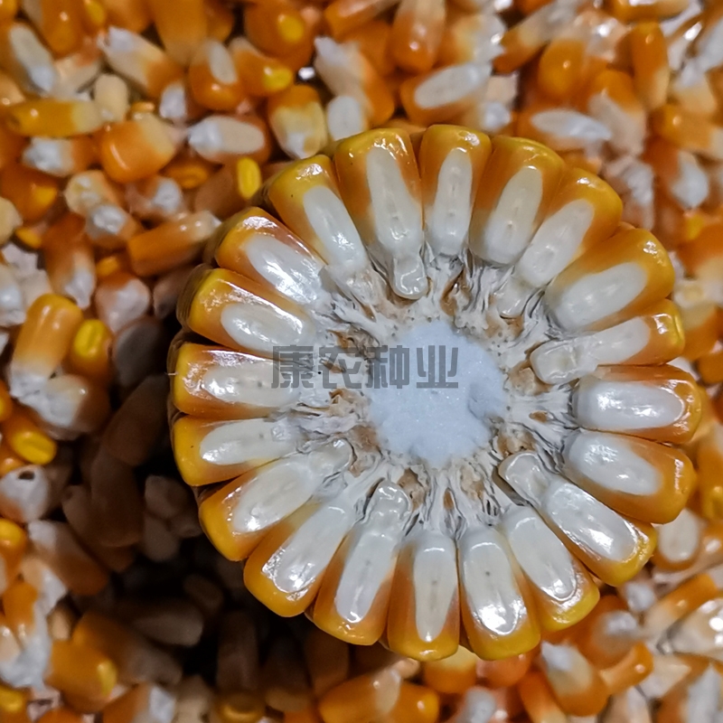株型半紧凑,植株中等,穗位偏高。幼苗叶鞘紫色,成株叶片数20片左右。穗上叶6片左右,雄穗分枝数8~19个,花药浅红色,花丝浅红色。果穗锥型,苞叶包被较完整,穗轴白色,籽粒黄色、马齿型。区域试验中株高299.7厘米,穗位高130.2厘米,空秆率0.3%,穗长18.4厘米,穗粗5.4厘米,秃尖长0.5厘米,穗行数18.8,行粒数35.2,千粒重343.6克,干穗出籽率87.4%,生育期130.7天。